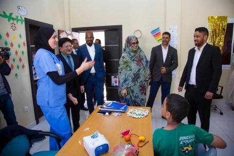 في إطار جهودها الإنسانية قامت السيدة الاولى الدكتورة مريم فاضل الداه رفقة سفير جمهورية الصين الشعبية لدى موريتانيا تانغتشونغدونغ زيارة لمركز زايد لأطفال التوحد شملت الزيارة جميع أقسام المركز حيث يقدم المركز حزمة من الخدمات المتخصصة، لتأهيل الاطفال سلوكيا،وتدريبهم على النطق،والتخاطب والعلاج الوظيفي،واستمعت الدكتورة والسفير الصيني الى طواقم التدريس ومتطلبات المركز من الناحية اللوجستية.