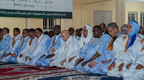 بمباني مدرسة تكوين المعلمين بنواكشوط استضاف فخامة رئيس الجمهورية السيد محمد ولد الشيخ الغزواني الأسرة التربوية حيث ثمن الدور الكبير الذي يقوم به المدرس معربا عن ماقدمته الحكومة في هذا الإطار من دعم مادي ومعنوي .